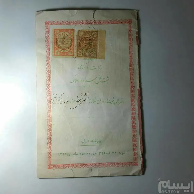 سند ازدواج قدیمی تمبر دار کوچک قدیمی