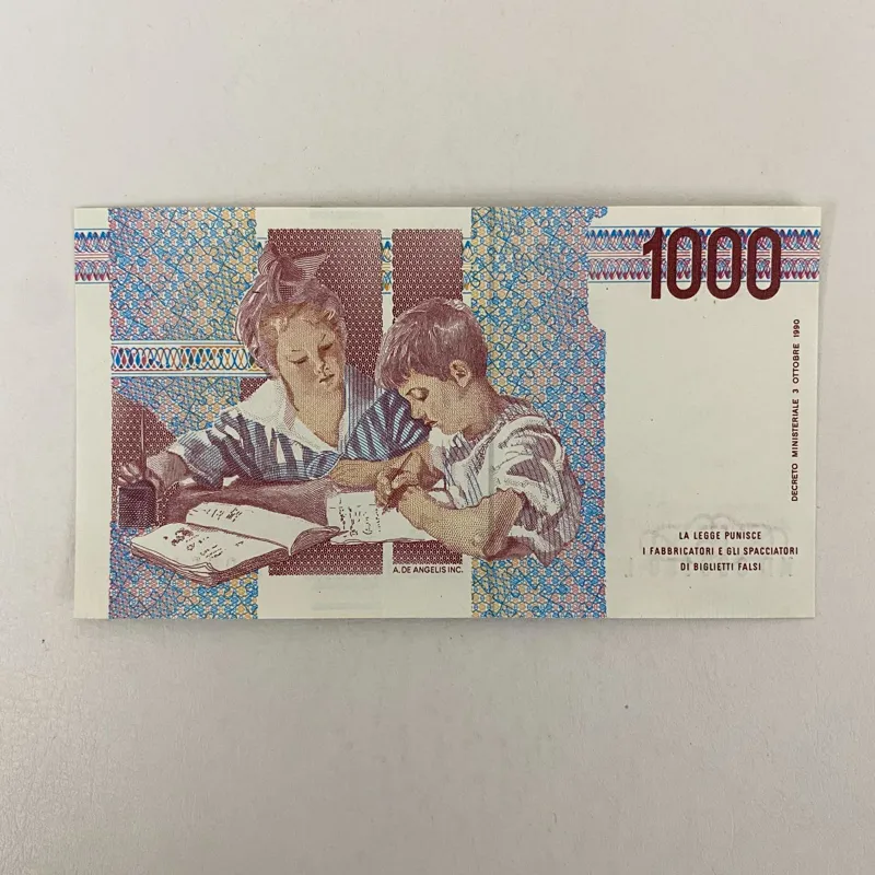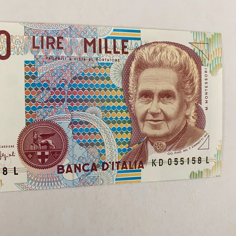 اسکناس زیبای هزار لیر ایتالیا با تصویری از " ماریا مونته سوری" اولین دختر ایتالیایی که پزشک شد و برنده مدال افتخار یونسکو.