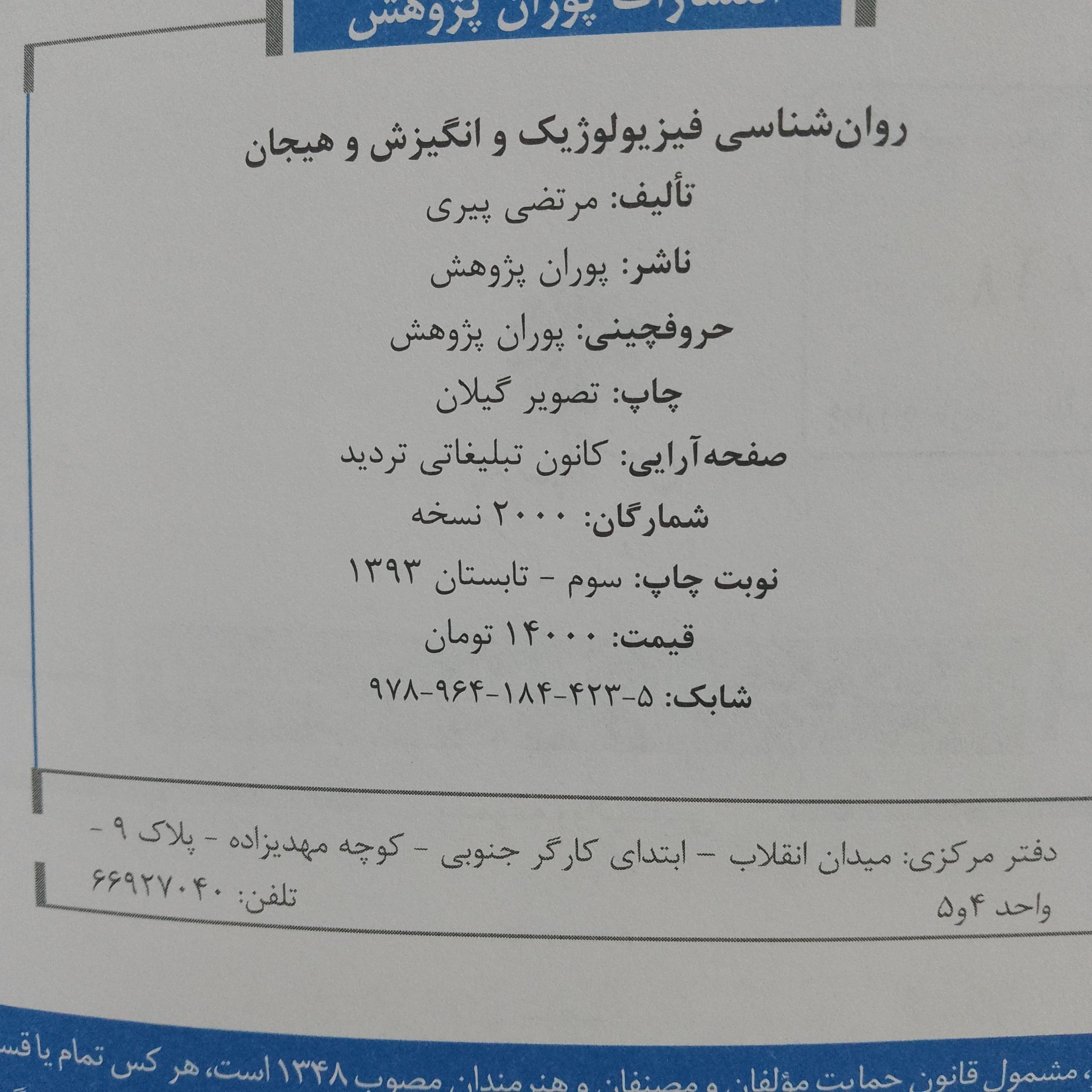 کتاب روانشناسی فیزیولوژیک وانگیزش و هیجان ،