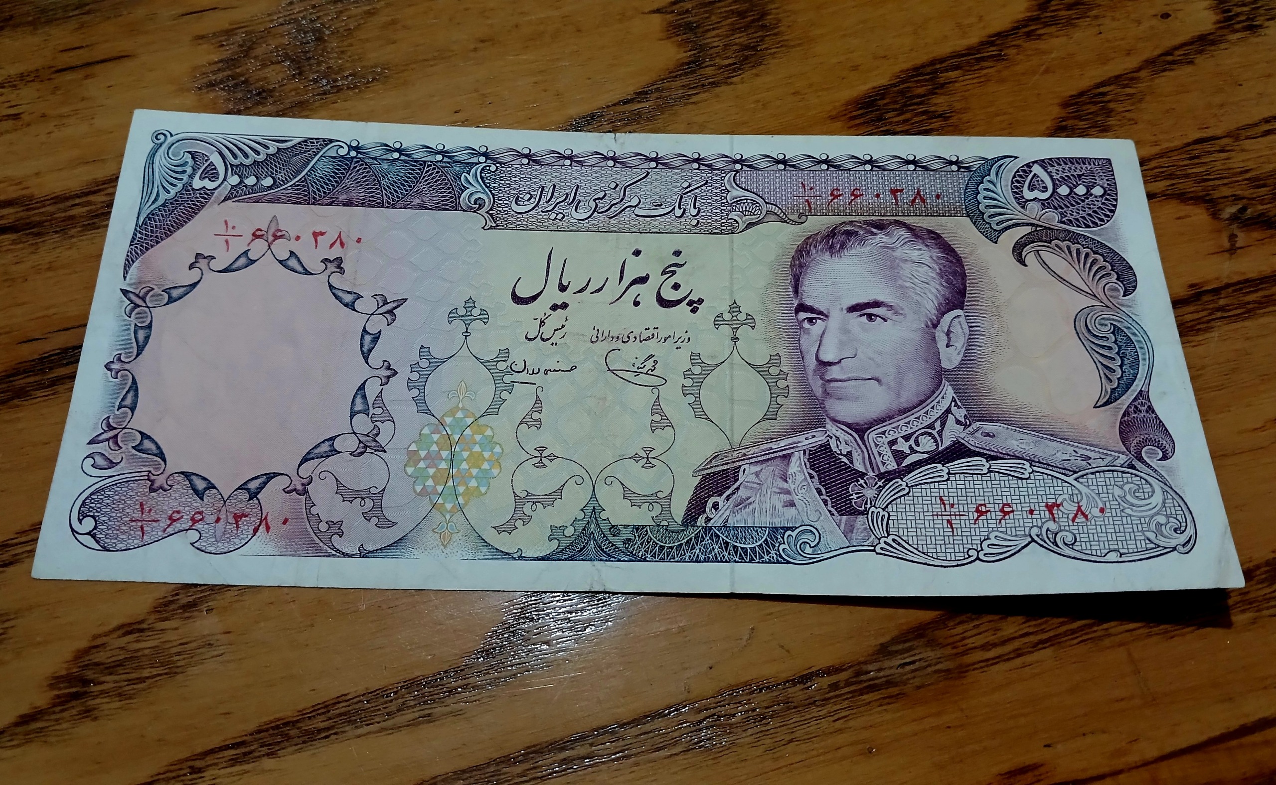 اسکناس 5هزار ریالی سری آخر شاهنشاهی معروف به شانه پهن