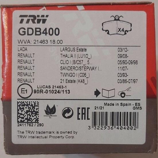 لنت ترمز جلو ال نود و ساندرو trw اصلی ساخت اسپانیا