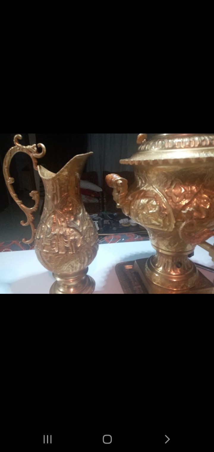 سرویس سماور برنجی قلمزنی روکش آب طلا