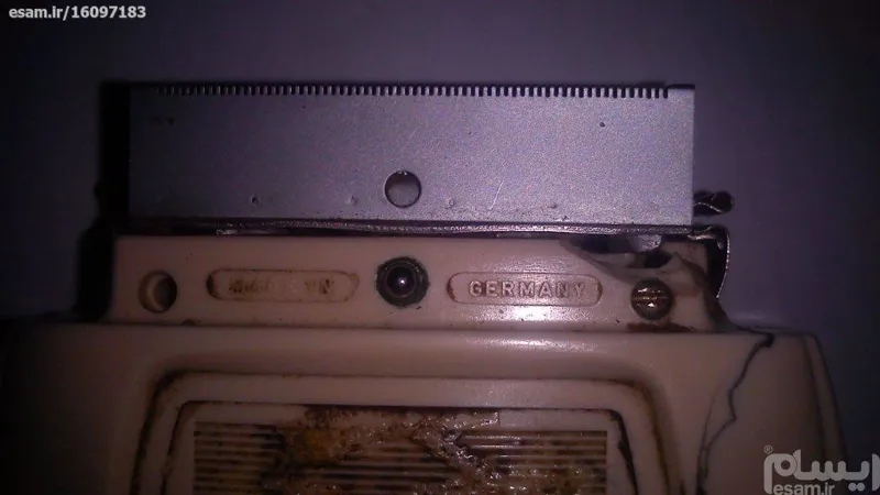 ریش تراش قدیمی المانی،قدیمی ،این نوع ریش تراش با یه هندل که بقلشه روشن میشه و کار کلید روشن خاموش رو میکنه.جز سری اولای ریش تراش برقیه.یک سمت جلدش شکستگی داشته داشته که ترمیم شده،تو عکسا هم مشخصه(ظاهر مطابق تصاویر)،از دوتا تیغه یه دونش رو نداره ولی با همون یکی هم میگیره.لطفا در خرید خود دقت بفرمایید تا حرف و حدیثی پیش نیاد،سوالی بود در خدمتم