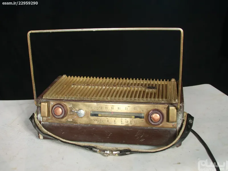 بدنه چوبی هست و صفحه ی بالای رادیو برنجی هست
