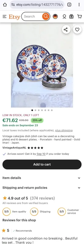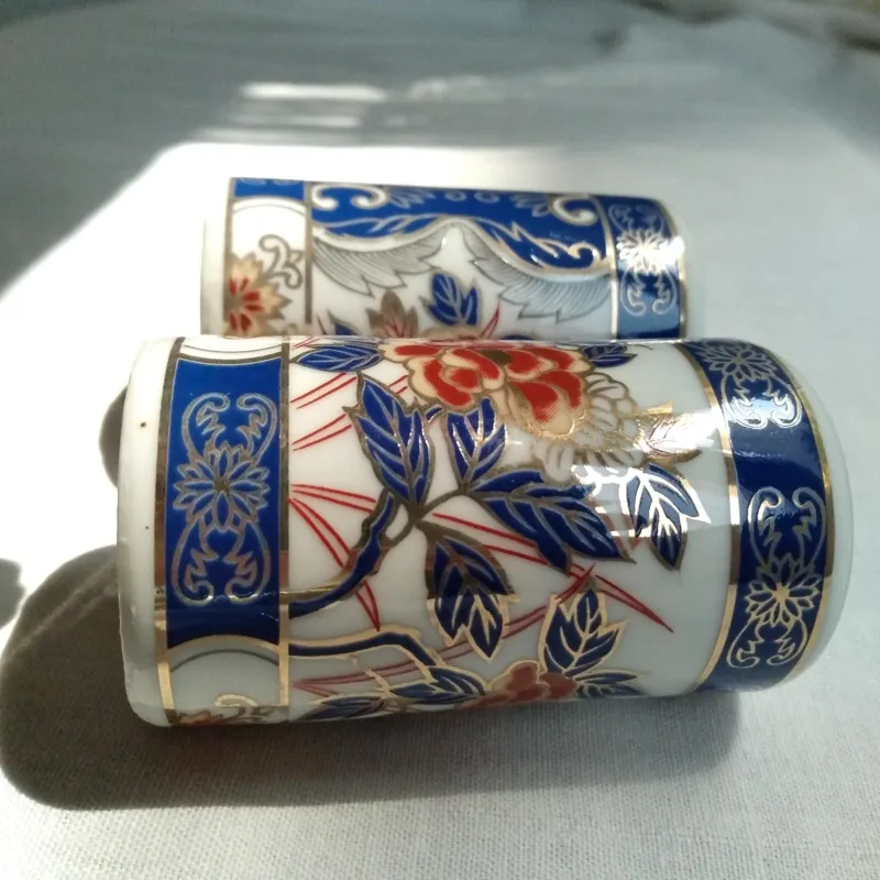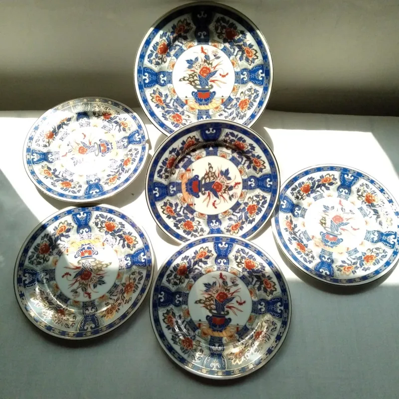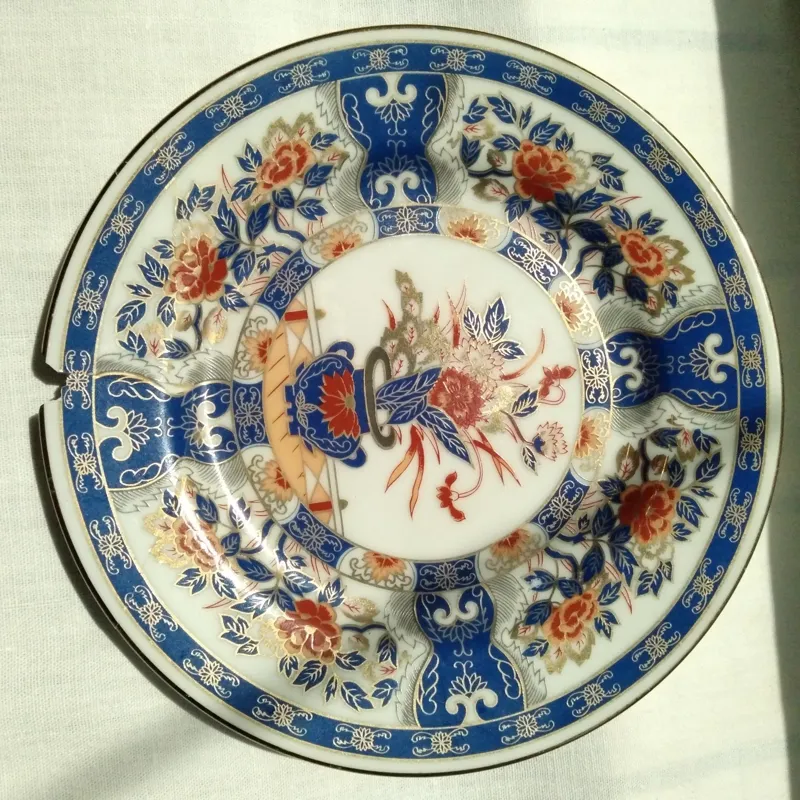 تماما نقاشی شده با دورگیری طلایی.روی طرح که دست بکشید برجسته بودنش کاملا مشخصه، به هیچ وجه استفاده نشده و کاملا نو هست،متاسفانه یکی از پیش دستیها هنگام جابجایی شکسته و چسب خورده که در عکسها مشخص کردم.