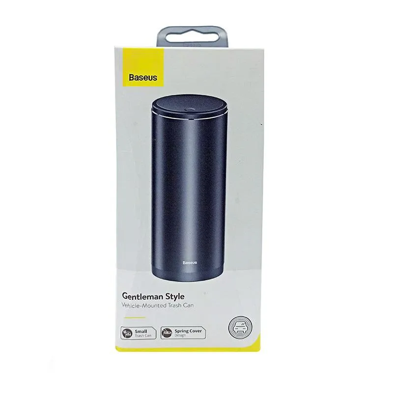 محصول Baseus Car Trash دارای یک روکش فلزی بوده که خود محفظه اصلی به صورت پیچی از زیر این قسمت فلزی به آن متصل می شود. در قسمت بالای این محصول یک درب قرار دارد که با فشار دادن آن به راحتی باز می شود و دوباره آن را فشار بدهید بسته می شود و در همان حالت می ماند. ابعاد این Car Trash Can Gentleman معادل 70*70*165 میلی متر بوده و این امر باعث شده تا بتوانید این محصول را داخل جا لیوانی اتومبیل قرار دهید.