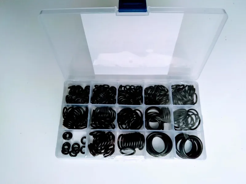 15 سایز مختلف (دارای تعداد اورینگ  بیشتر ولی  تنوع سایز کمتر  نسبت به جعبه اورینگ 250 عددی parker که دارای تنوع 24 سایز مختلف می باشد)