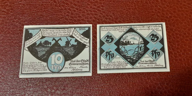 {{ اسکناس های بسیار زیبای نوت گلد در زمان جنگ جهانی اول در ایالات مختلف آلمان به مدت چند سال رواج داشته ودارای تنوع و قدمت بیش از 100 سال هستند (همزمان با قاجار در ایران) و در سایت های جهانی نیز خرید و فروش میشوند }}
