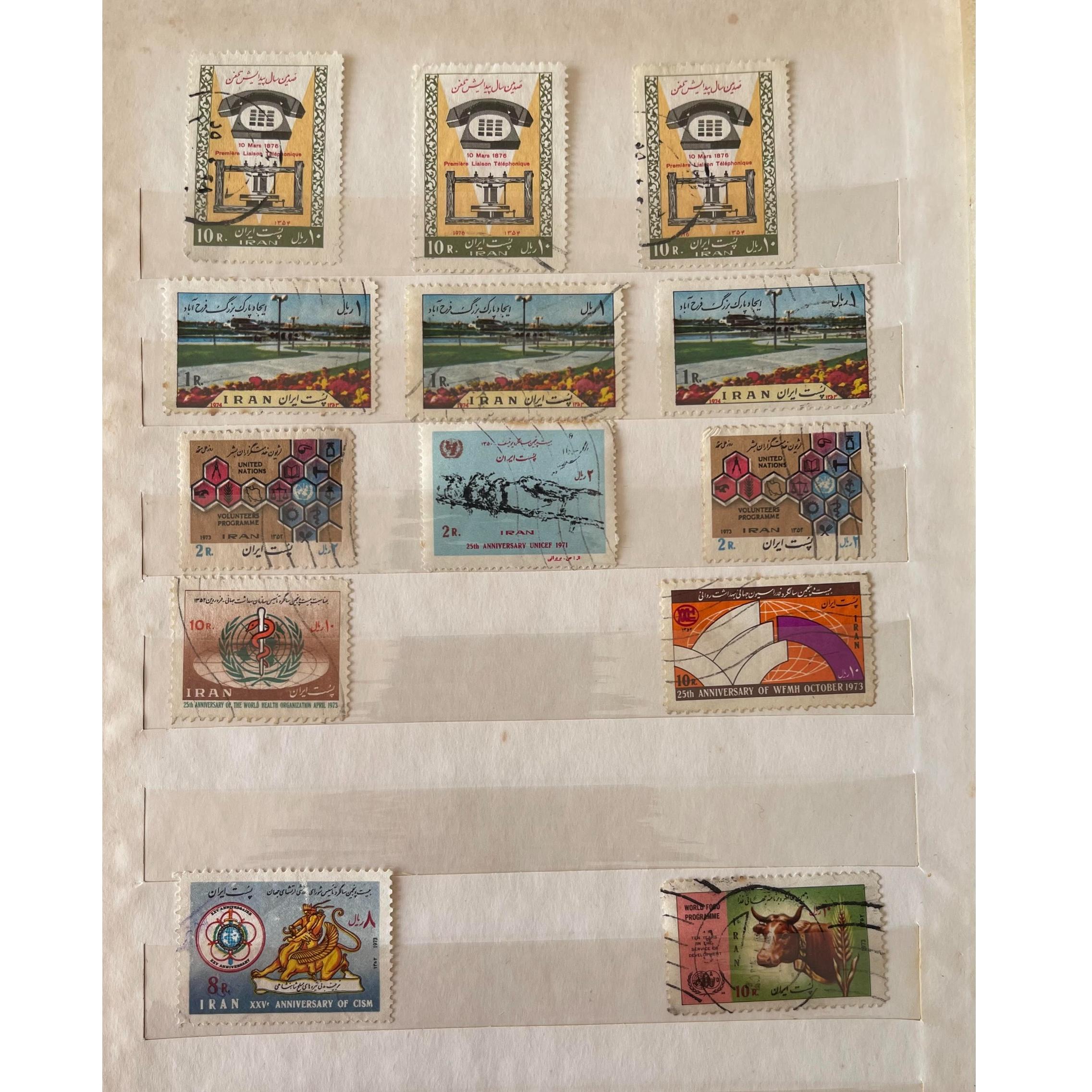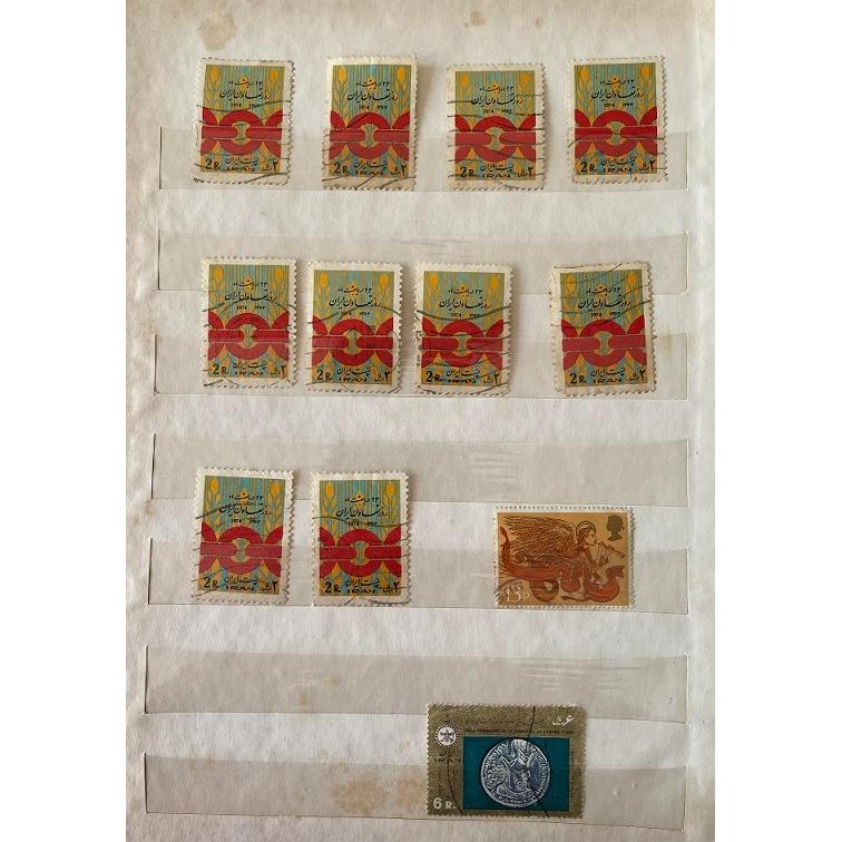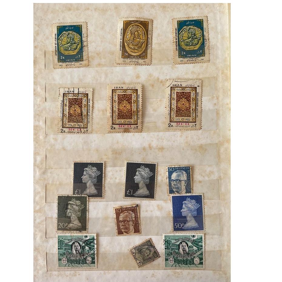 آلبوم تمبر قدیمی با 9 صفحه که اکثر تمبرهای آن مهر خورده و مناسبتی می باشد. تمبر ها مربوط به کشور ایران است به جز چند مورد که یک مورد آن تمبر انگلستان بدون مهر ( مربوط به ملکه بریتانیا) است. به دلیل محدویت بارگزاری عکس ، فقط 5 صفحه بارگزاری شده است. خود آلبوم کهنه هست و در صورت خریداری ، آلبوم نیاز به تعویض دارد. همچنین در بین تمبرها ، یک تمبر برای کشور عراق، آلمان و بحرین موجود است که مهر خورده است.