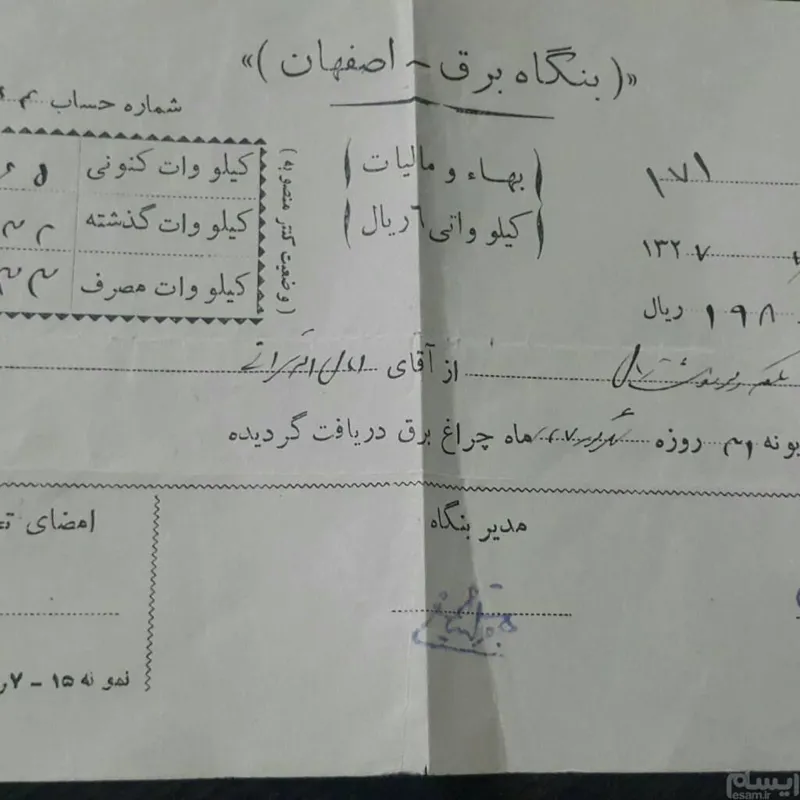 اوراق قدیمی اصفهان قبض برق.حواله برات.بلیط واحد