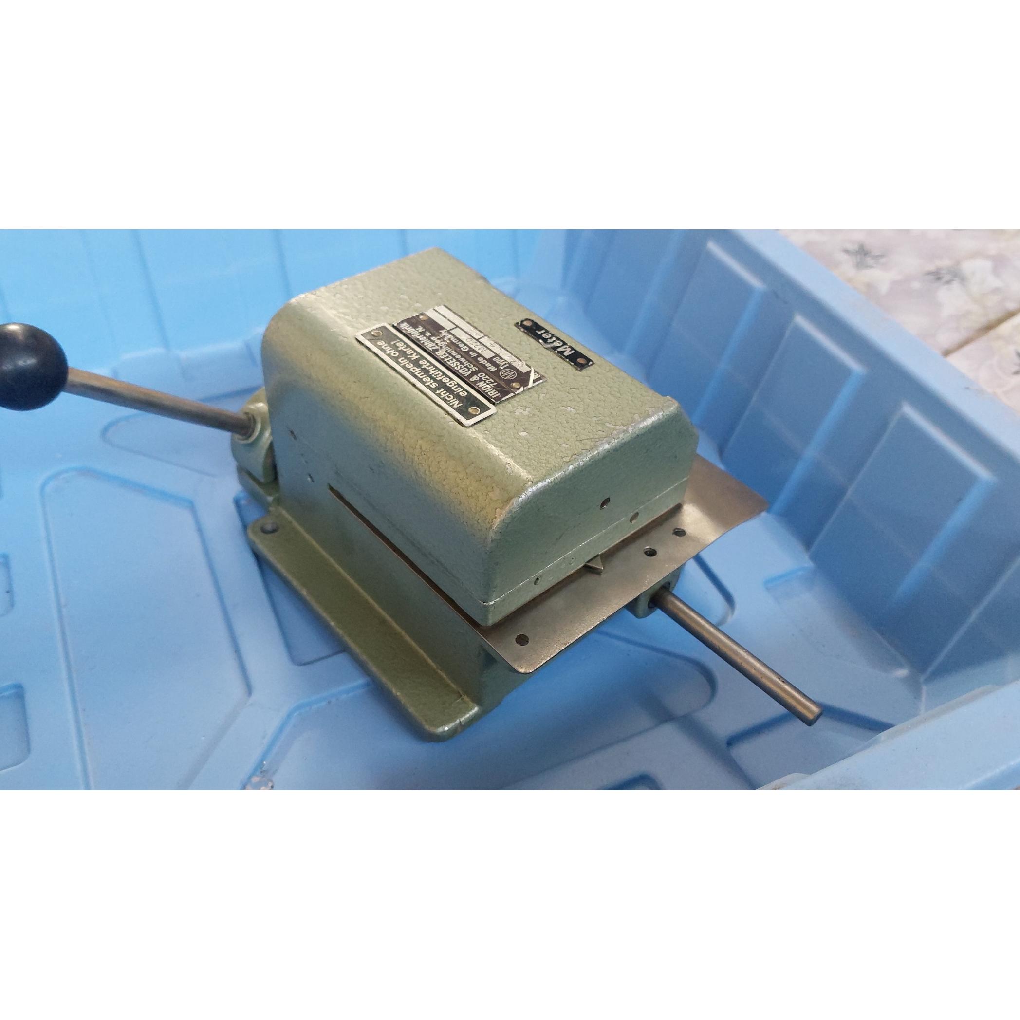 یه دستگاه کوچک آلمانی گویا کار متر کردن روی دستگاه پارچه بافی یا کارخانه کاغذ یا غیره رو انجام میداده و با تعویض شیفت کاری هر کارگر دستگاه مقدار متراژ کارکرد خودش رو با قرار دادن کارتی زیر شکاف همین دستگاه و کشیدن اهرم کناری عدد روی متر حک میشده روی کارت مربوطه و در واقع سندی برای کارکردش در ادن شیفت بوده. بعد از کشیدن اهرم همزمان بعد از حک یا چاپ متراژ عددها صفر میشده واسه شیفت بعدی. کلا کار جالب و کمیابی هست.