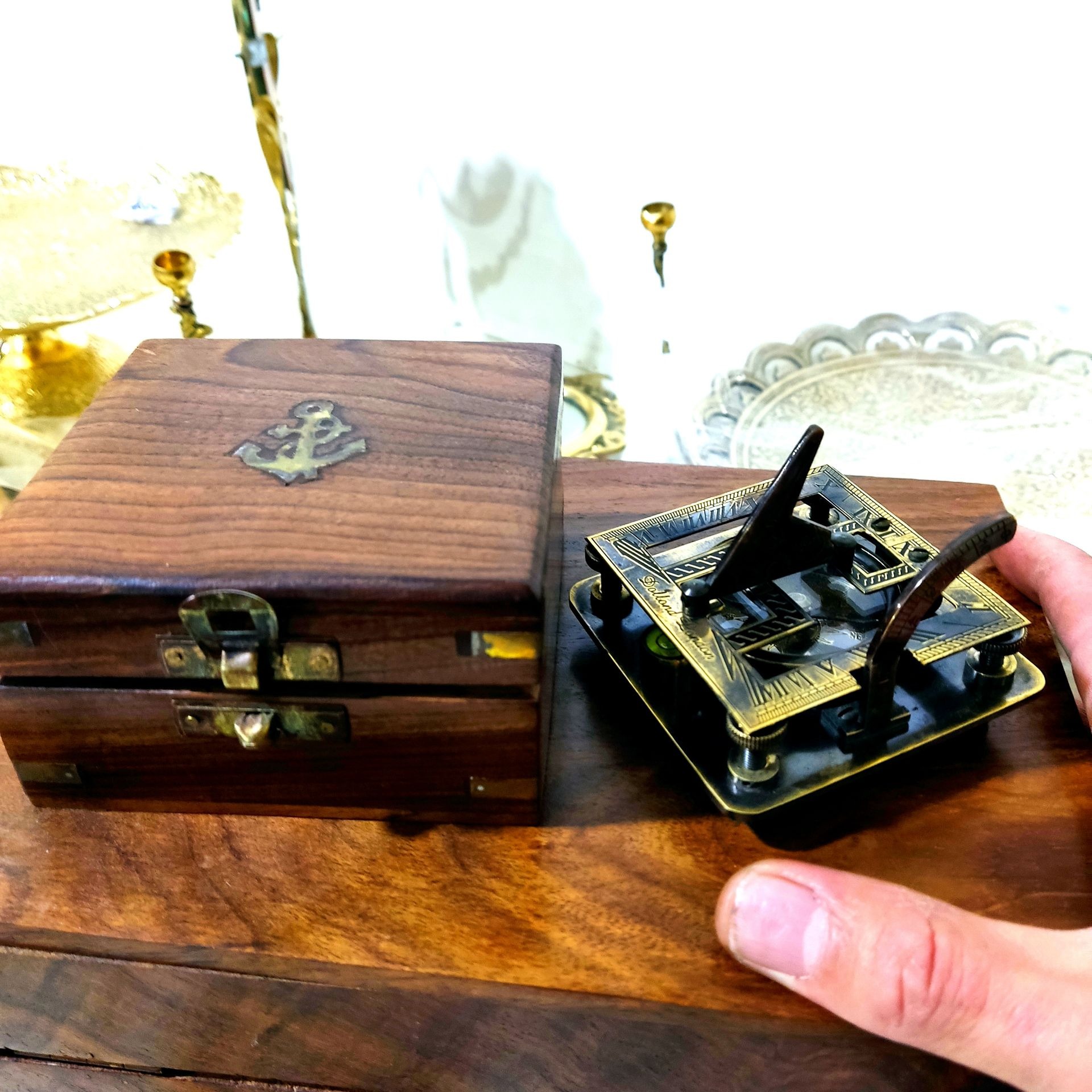 دارای ساعت خورشیدی قطبنما اسطرلاب تراز و....خارجی دارای جعبه شکیل ومرغوب