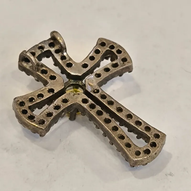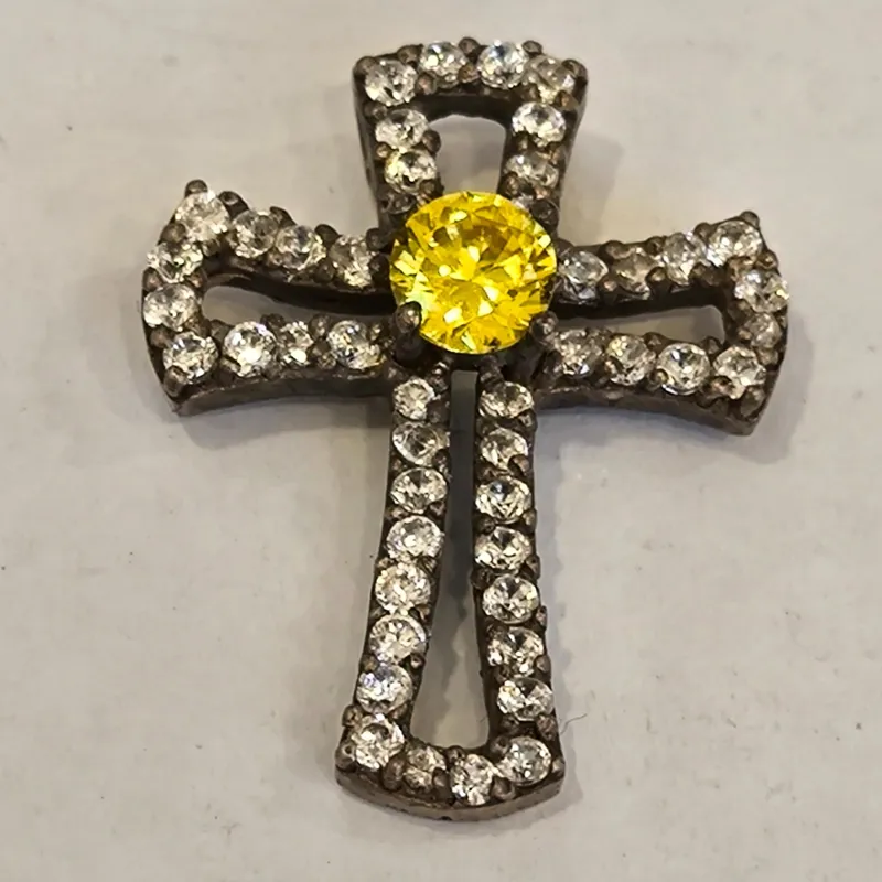 مدال صلیبی شکل جواهر کاری با سنگ سوییسی و با زیر کن اعلا به وزن 5.25گرم