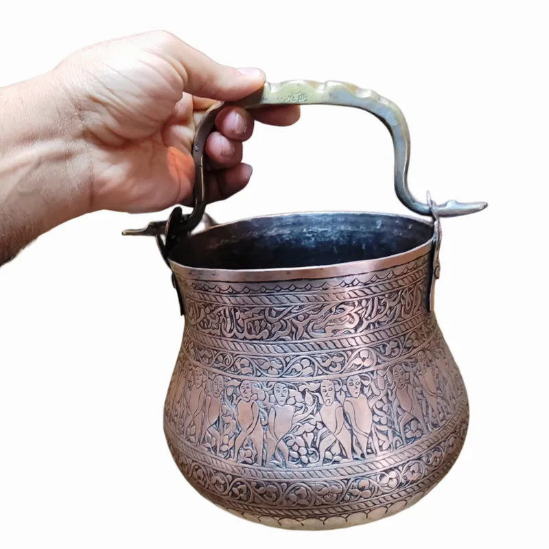 سطل قلمزنی قدیمی آنتیک قاجاری کلکسیونی قلم زنی