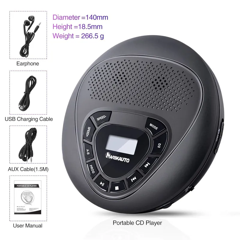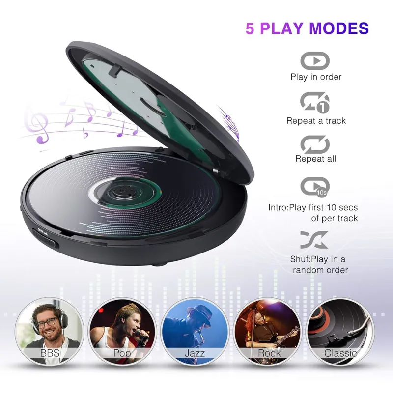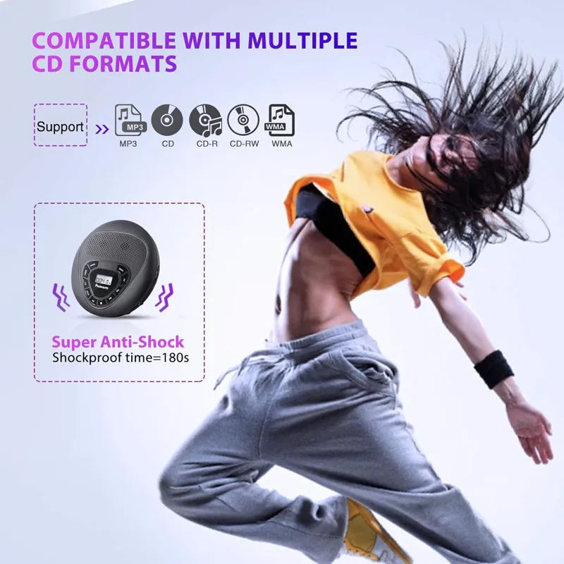 - ضد شوک فوق العاده: تا 100 ثانیه محافظت ضد پرش برای سی دی ها و 180 ثانیه محافظت ضد پرش برای سی دی های MP3، حمل آن آسان است هر کجا که بروید، اجازه دهید موسیقی وارد زندگی روزمره شما شود.