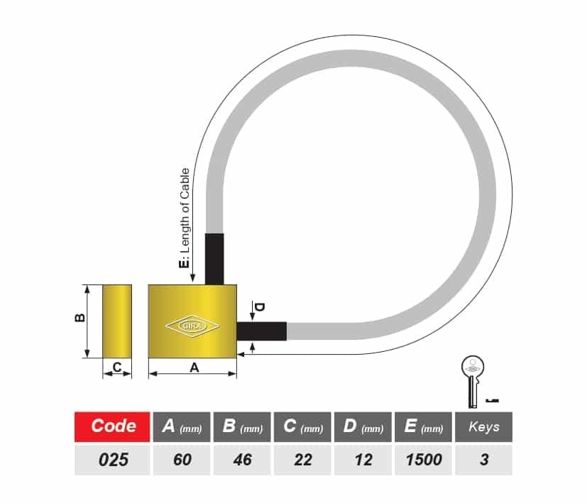 قفل ویژه موتور سیکلت 150 سانت کد 025 گیرا