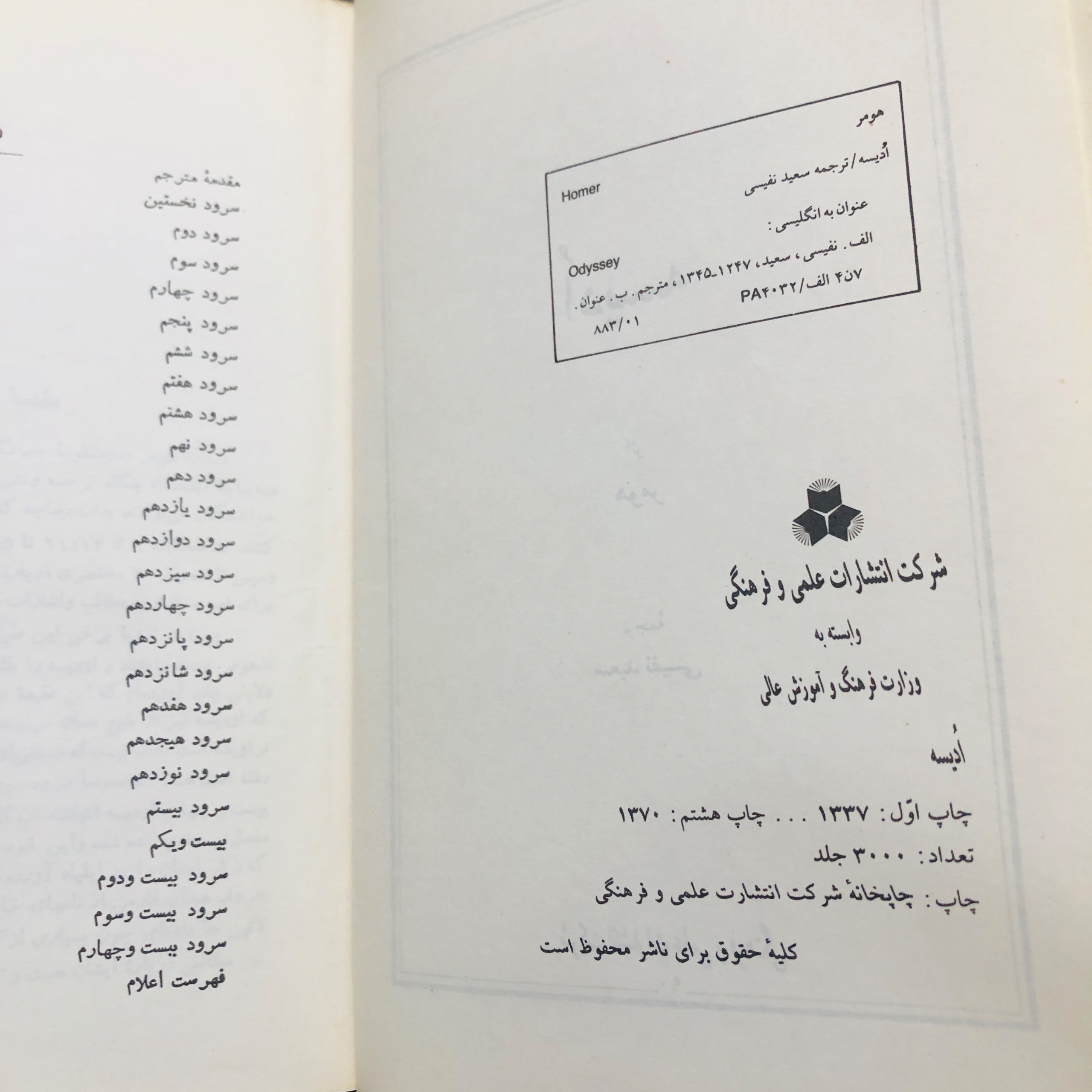 کتاب ادیسه هومر (انتشارات علمی فرهنگی)