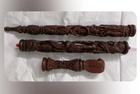 عصا چوب عناب کنده کاری شده برجسته و عمق کاری ظریف