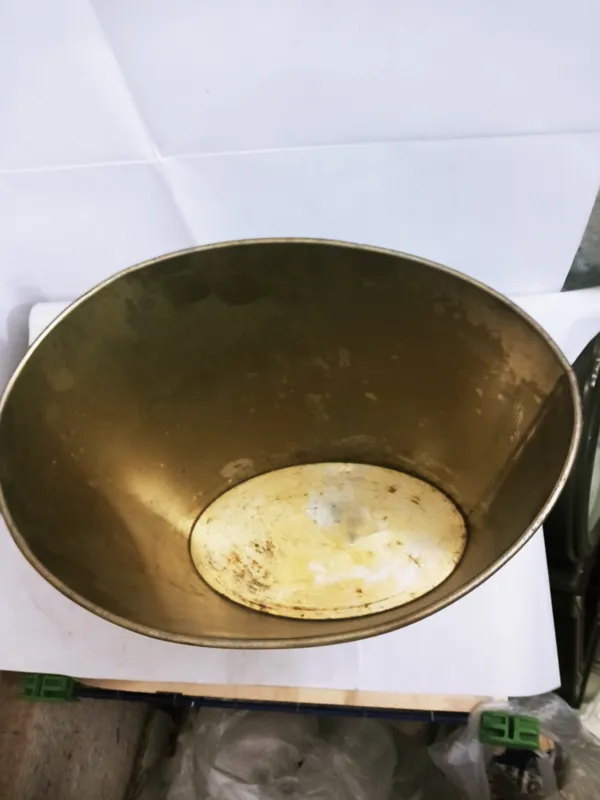 سطل فلزی قدیمی بیضی شکل جهت گوشه سالن یا اتاق مورد استفاده هست .ارتفاع 26 سانت .