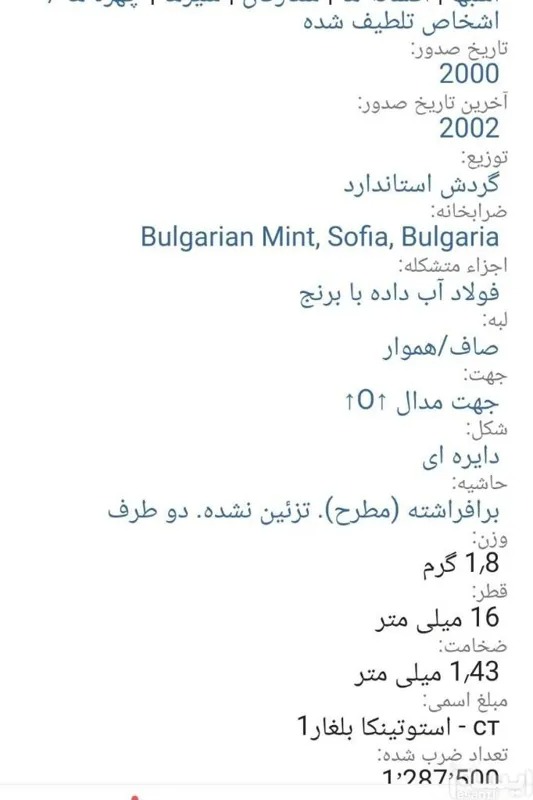 سکه1 استنونیکی بلغارستان2000(کد1413)