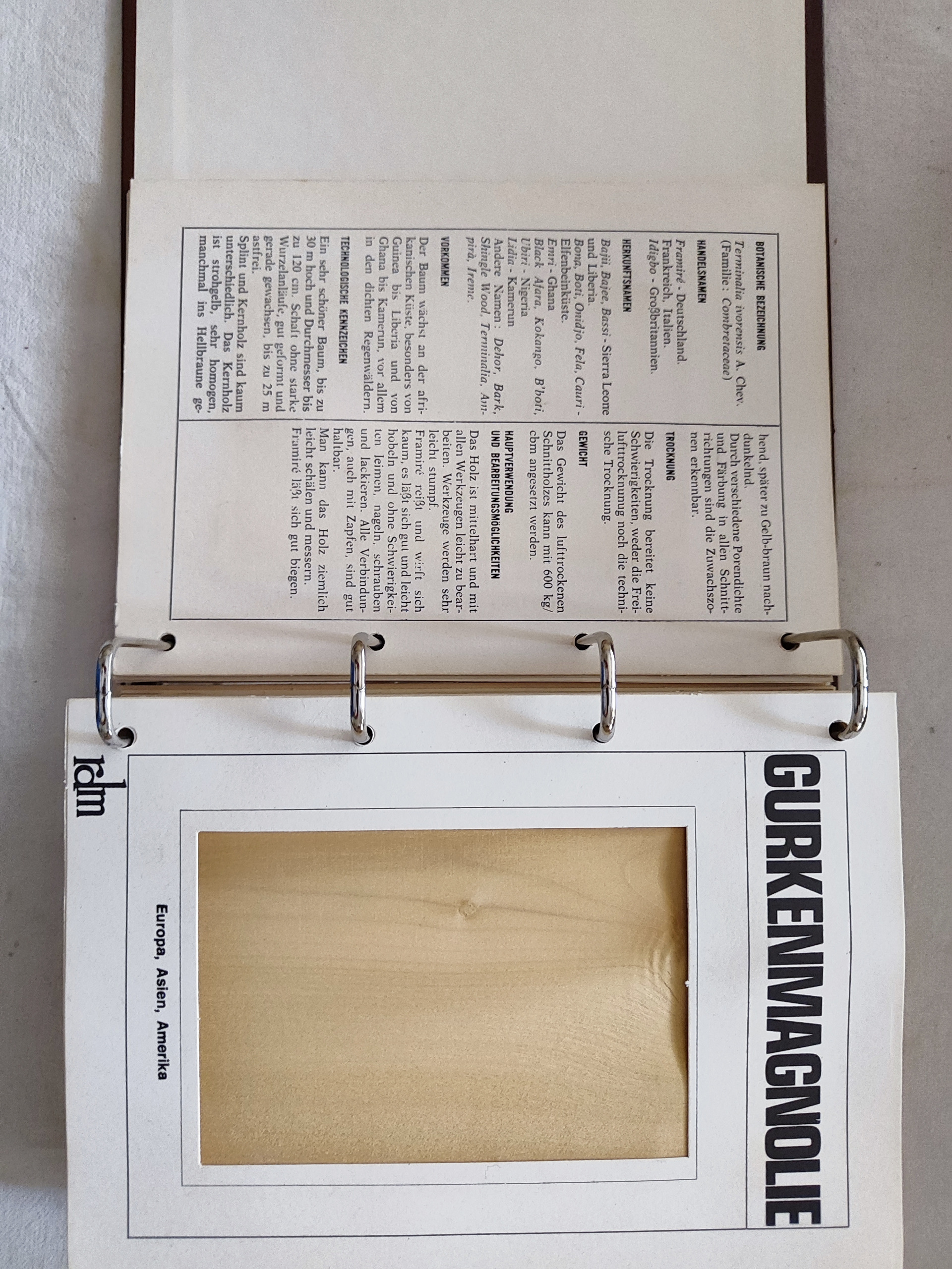 این مجموعه 3 جلد می باشد.در این کتاب ها که به زبان آلمانی می باشد نمونه چوب بیش از 100 مدل درختان مختلف گنجانده شده است و درمورد ویژگی ها و مشخصات آنها توضیحات کامل داده شده است.بسیار نفیس.