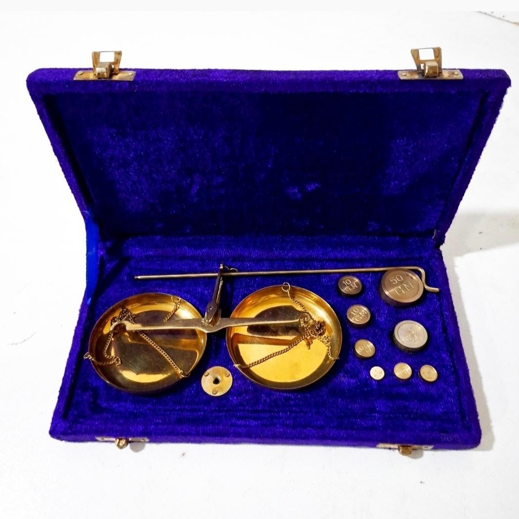 ترازو برنجی هندی ترازو جعبه دار برنجی 100 گرمی