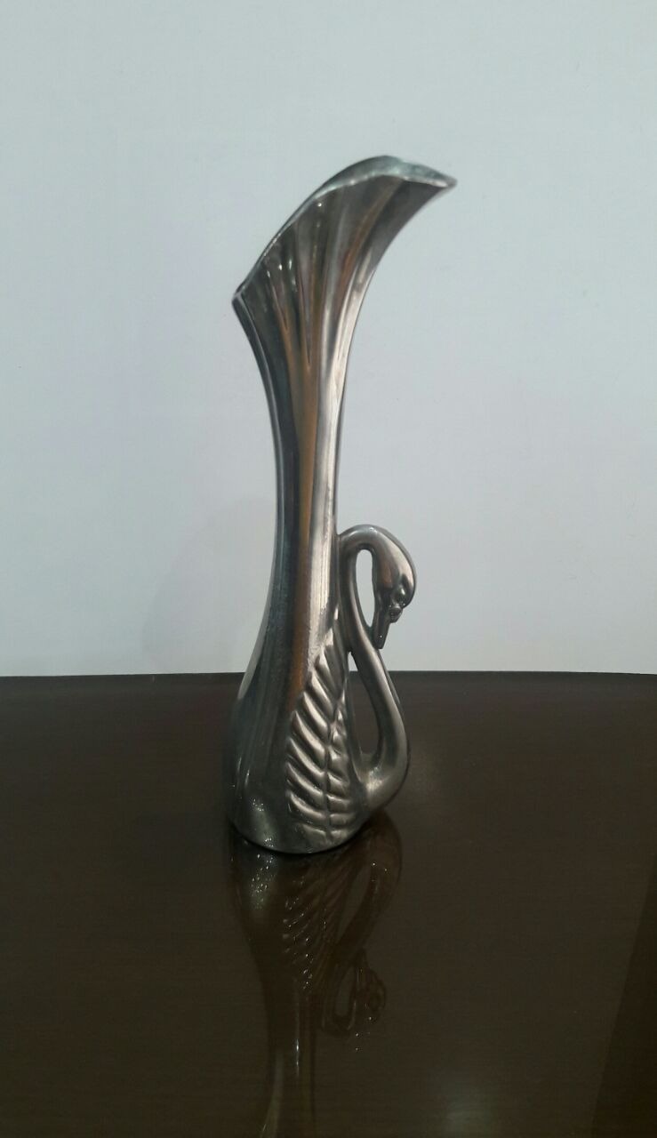 آیتم 7 - 719 _ گلدان آنتیک و قدیمی فلزی خارجی ( غیر مغناطیسی) به شکل قو ،ارتفاع 17 سانت ، وزن 175 گرم ، محکم ، زیبا و منحصر به فرد قیمت 1 میلیون تومان.