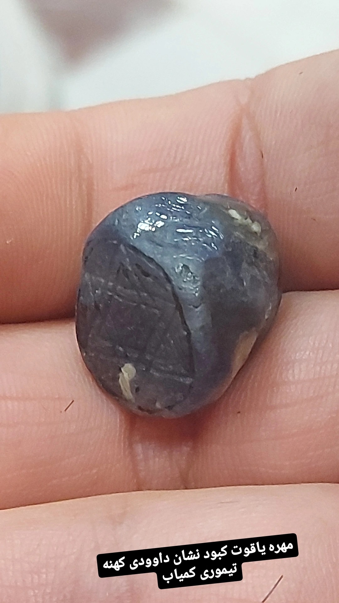 یاقوت کبود قدمت دار یا ساسانی یا ام تیموری با نشان داوودی درشت و سنگین وزن شیک و آنتیک کهنه
