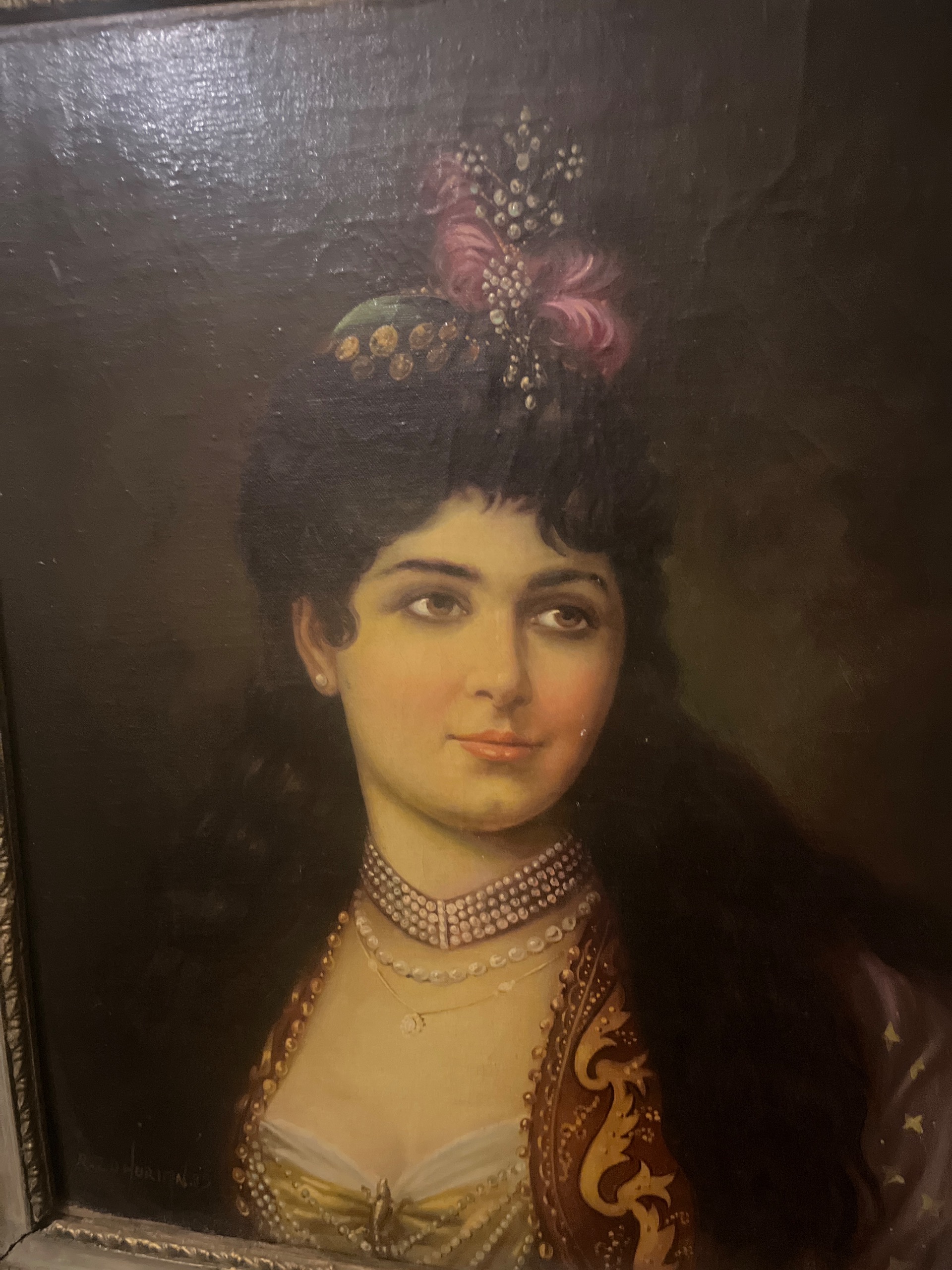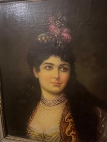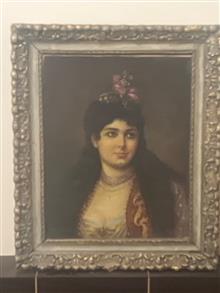نقاشی رنگ روغن اثر استاد ظهوریان نام اثر زن قجری قاب چوب