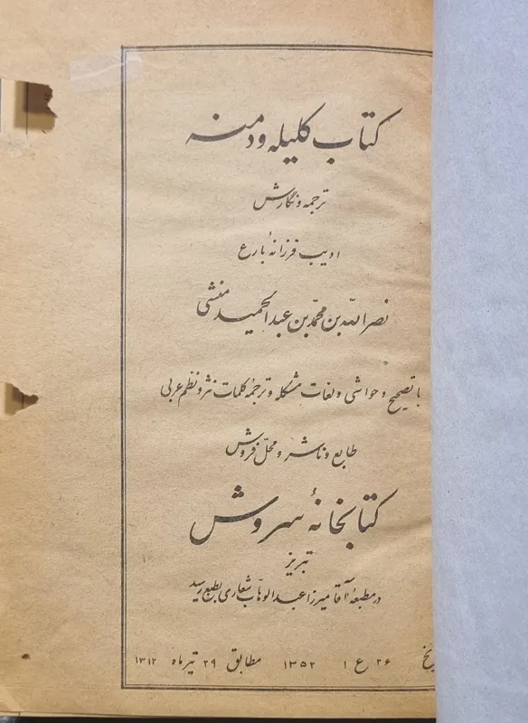 کتاب کلیله و دمنه به خط حسین خویی 1312