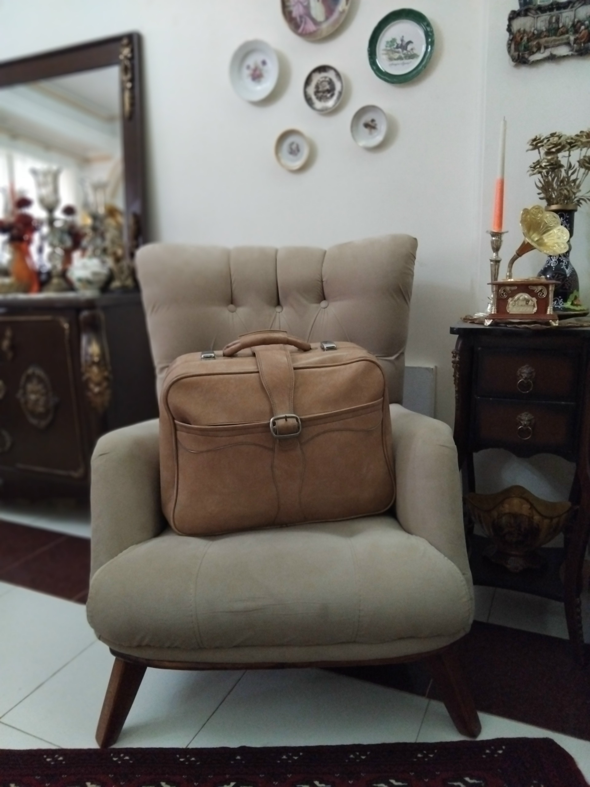 چمدون خوش سایزه برای دکور عالیه سالمه جنسش چرم زیپ و قفل و کمربند سالمه داخلش پارگی نداره.اگه خواستید فیلم میفرستم از داخلش .رنگ داخل کرم هست.فقط یه قسمت گوشه بالا سمت راست یه زدگی کوچک داره میتونید ترمیم کنید .بعلت قدمتش هست.قدمتش برای دوران پهلوی هست.