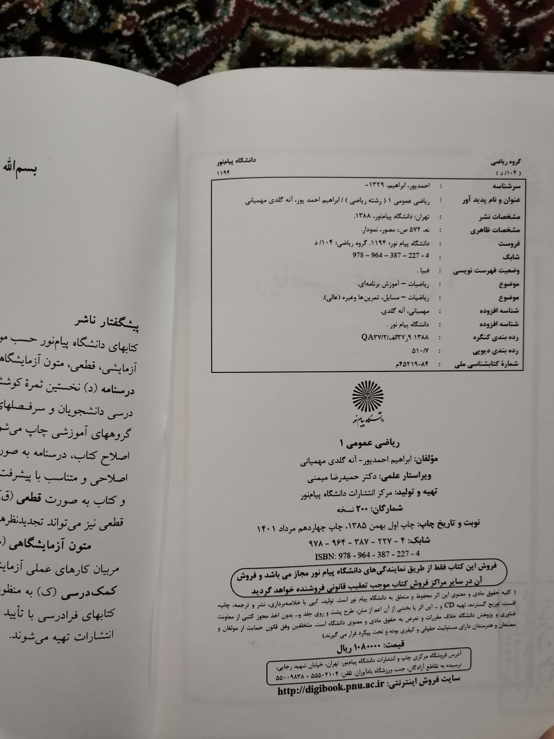 کتاب ریاضی عمومی 1 پیام نور__دانشگاهی