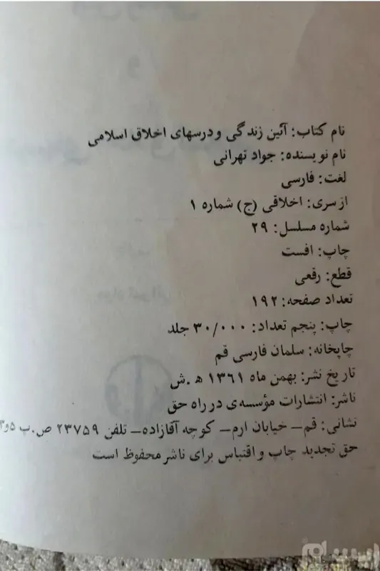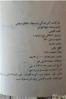 کتاب آئین زندگی و درسهایی از اخلاق اسلامی