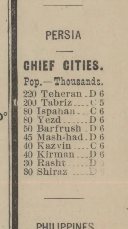 نقشه آسیا 1904 میلادی با آمار شهرها