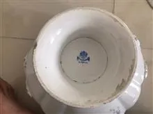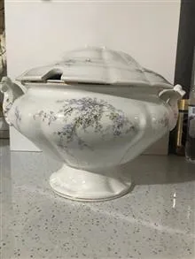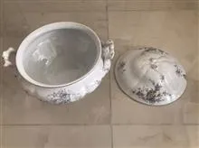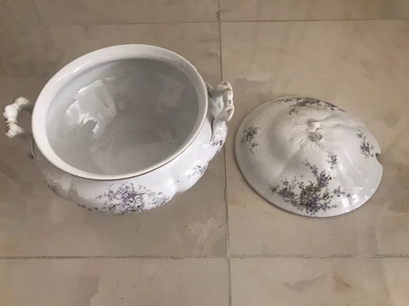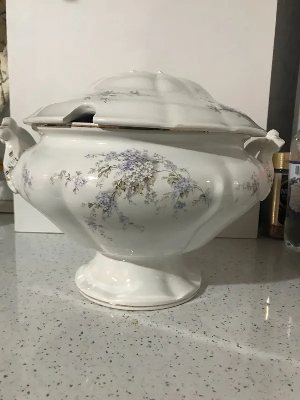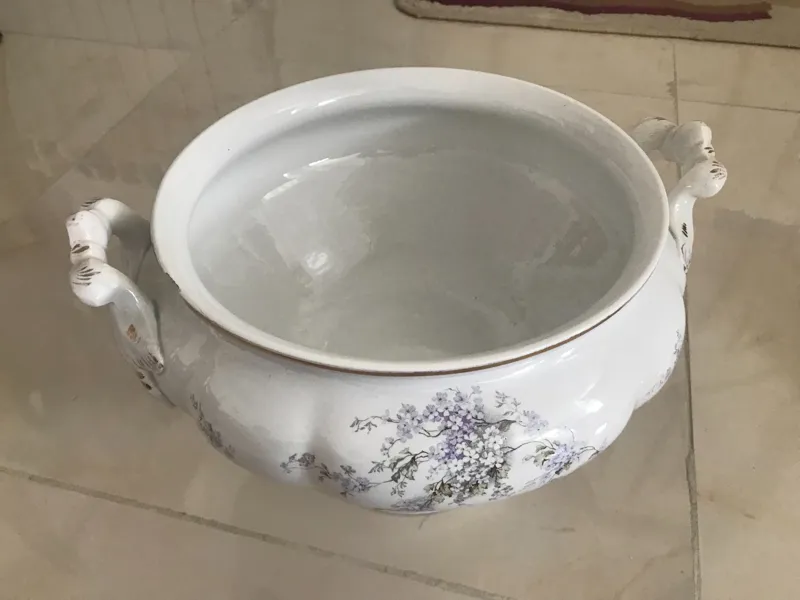 سوپ خوری پایه دار چهارلیتری قدیمی قاجاری طرح شکوفه های  بسیار زیبا ساخت انگلیس یا روس