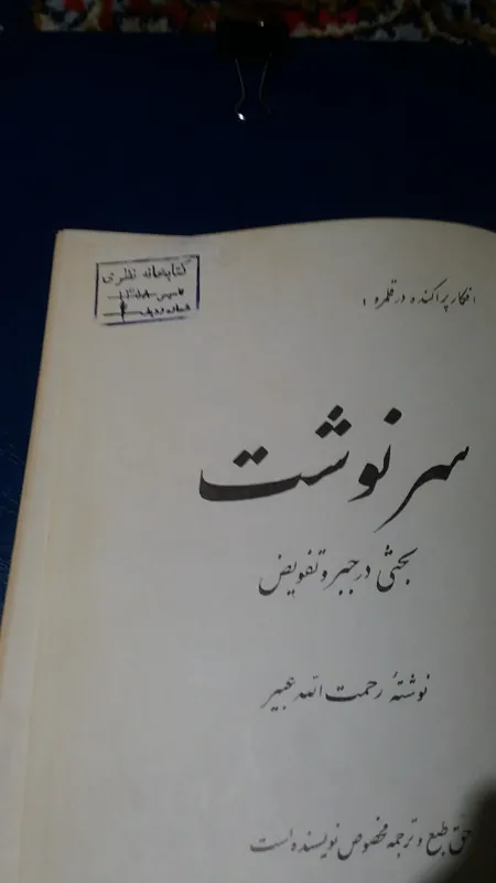 عنوان دیگر و فرعی کتاب - بحثی در جبر و تفویض - وزیری - گالینگور - 287 ص - چاپ اول - سال 1340 ش - نویسنده : رحمت اله عبیر - نشر : ابن سینا -