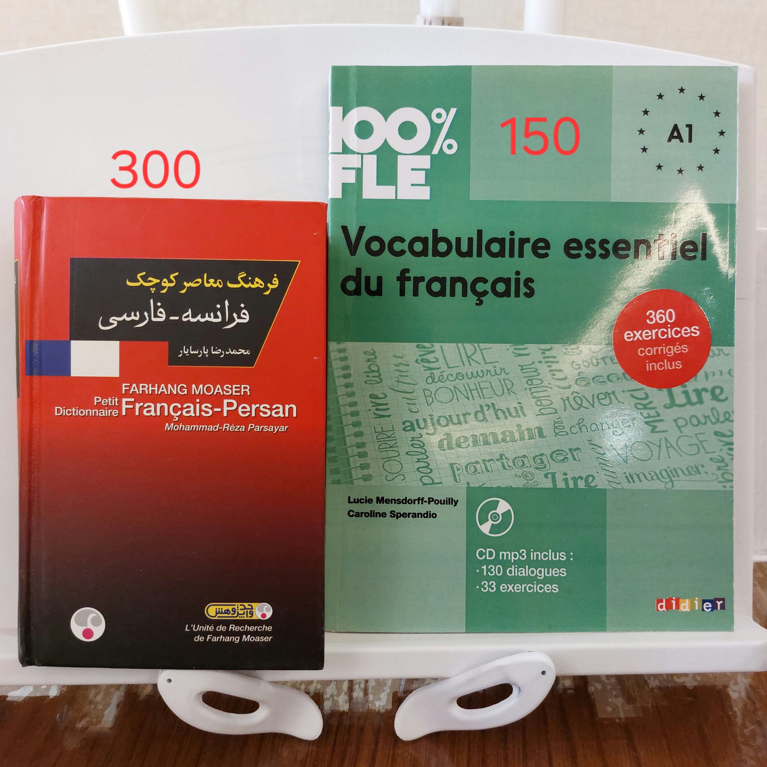 کتابهای تمرین و دیکشنری کاملا نو و کتابهای Latelier A1 و A2 در حد نو میباشد.