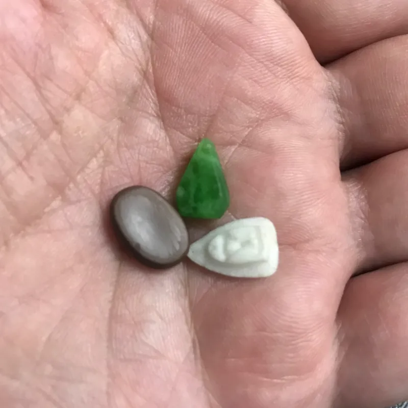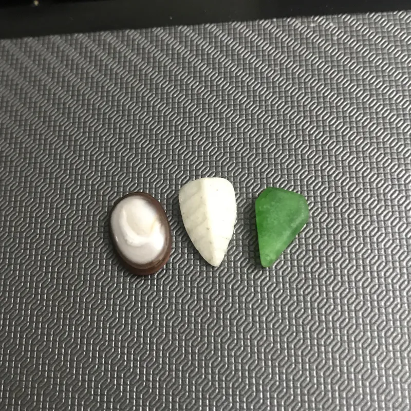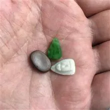 یکی سبز فکر کنم یاقوت یکی سه پوست یکی هم سفید که روش کار شده نمیدونم چیه و شکل چی تراش دادن ولی زیبا و انتیک