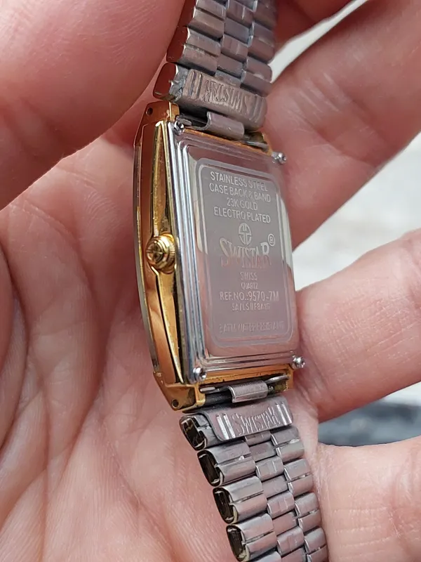ساعت اورجینال سویسی سوستار بسیار تمیز موتور روندا صفحه در قسمت بالا کمی رنگ پریدگی داره شیشه ساعت کمی ازروی قاب بلند شده ودوباره سرجاش قرار گرفته بزرگواران ساعت ضد آب شده وکاملا سالم هستش یادمه حدود اگه اشتباه نکم سال 87 بودش قیمت یه ساعت اورجینال سیکو آکبند اون موقع 50 تومن بود وقیمت این مدل ساعتا که اون موقع مد بودش 60تومن قیمت داشت یعنی از سیکو اتومات یه سروگردن بالاتر بودش
