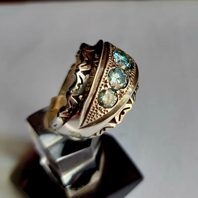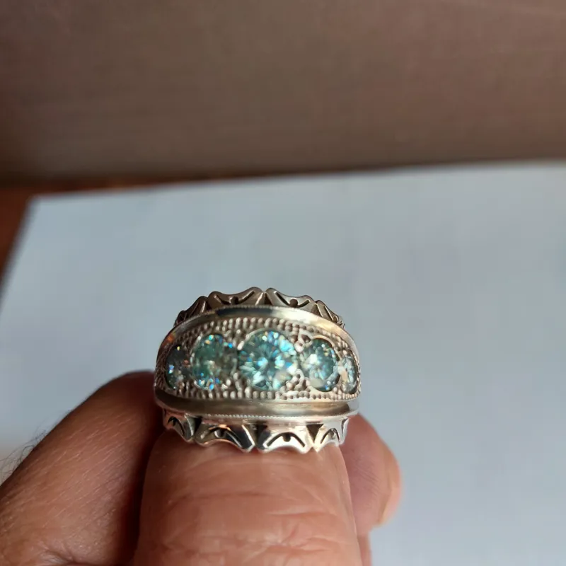 اینه کاری حرفه ای با پنج نگین درخشان وزیبای موزانایت روس که به انگشتان شما جلوه خاصی میده