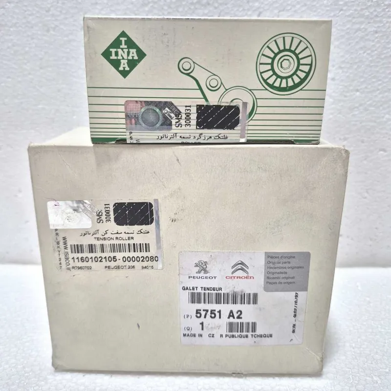 مجموعه ی دو عددی هرزگرد دینام پایینی و تسمه سفت کن کامل دینام اورجینال پژو 206 و 207
