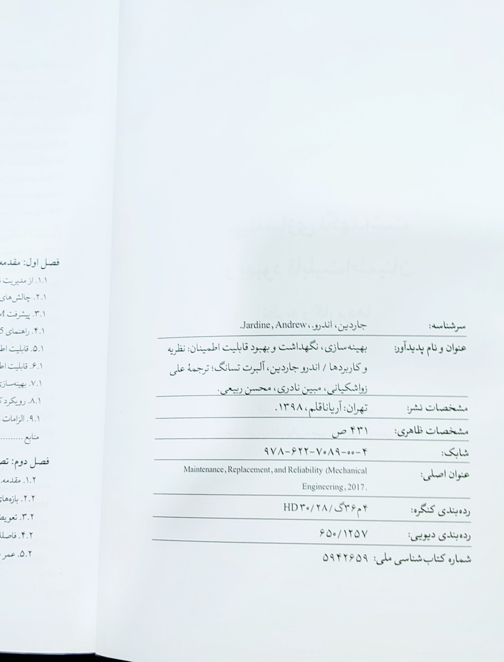کتاب بهینه سازی نگهداشت و بهبود قابلیت اطمینان