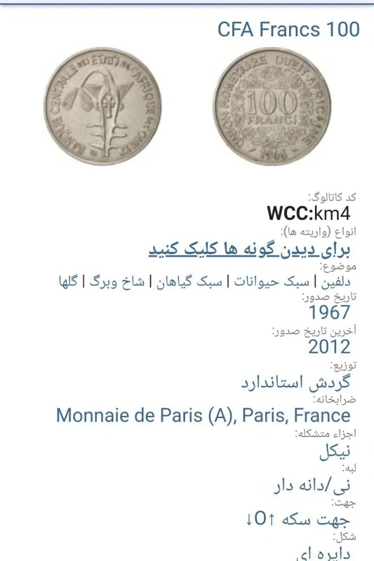 | کشور | فرانک جمهوری آفریقای مرکزی |