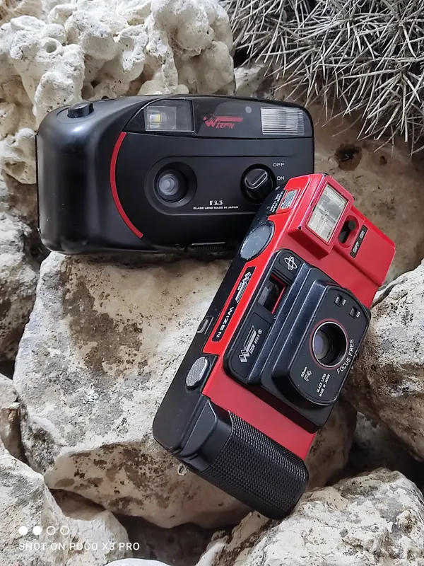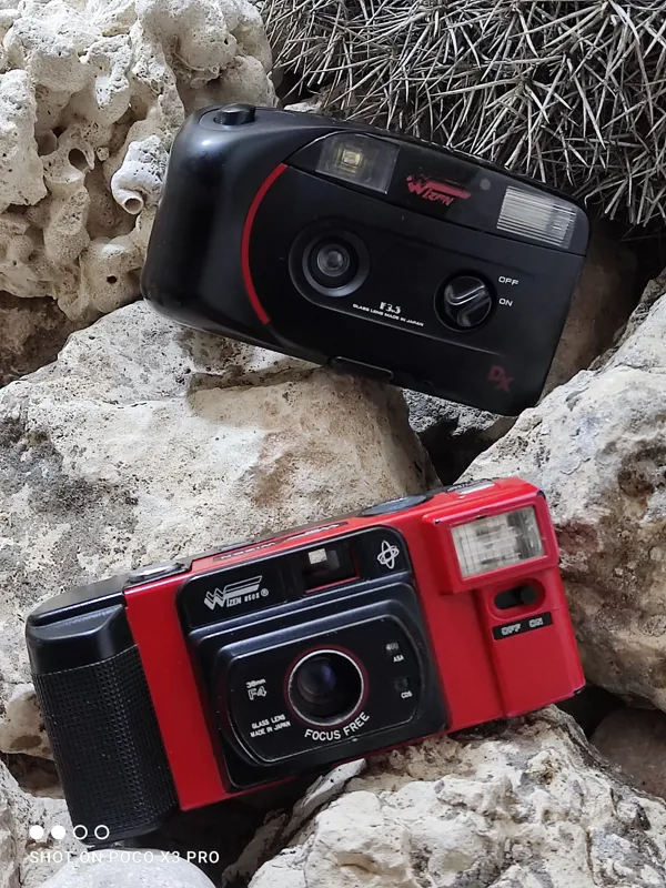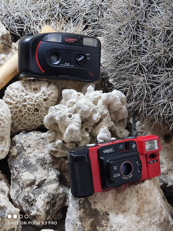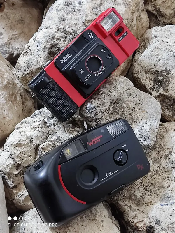 دو عدد دوربین عکاسی قدیمی مطابق تصویر ظاهرشون خیلی تمیزه دوربین قرمزه معیوبه فقط جنبه دکوری داره ظاهرشم خیلی زیباست جنسشم مث سنگ محکپه ولی دوربین مشکیه با اینکه هنوز باتری روش نذاشتم احتمالا سالم باید باشه برای کلکسیون و دکور عالیه در ضمن دوربین مشکیه هم کیف داره هم جعبه