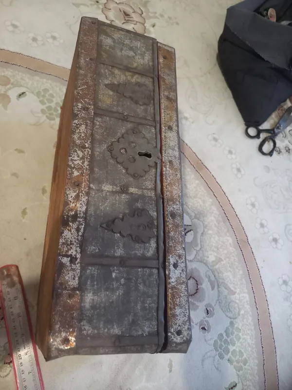 صندوقچه بسیار قدیمی وقفل دست ساز بسیار خاص کلیدش گم شده ولی یک کلید براش درست کردم بسیار محکم وسالم تمام قطعات حتی قفل تمام دست ساز میباشد بقیمت خوب