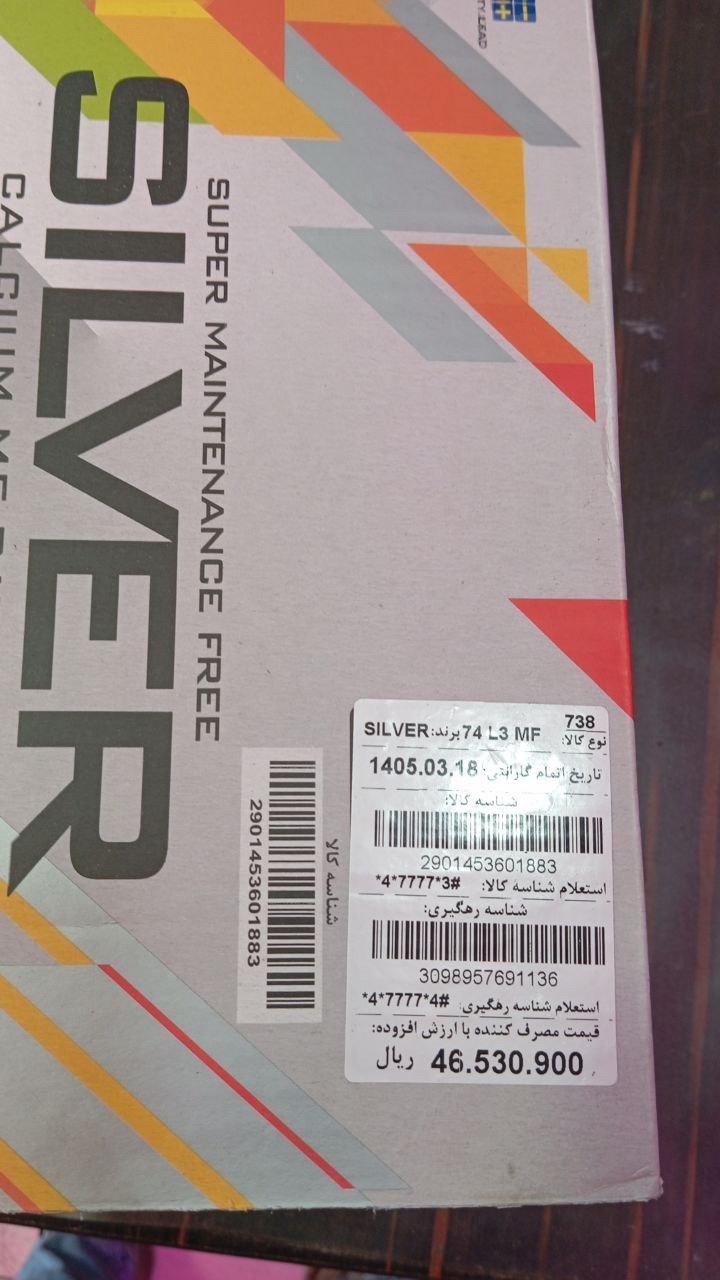 یه باتری 74 آمپر سیلور 20ماه ضمانت داره اونم صفر صفر