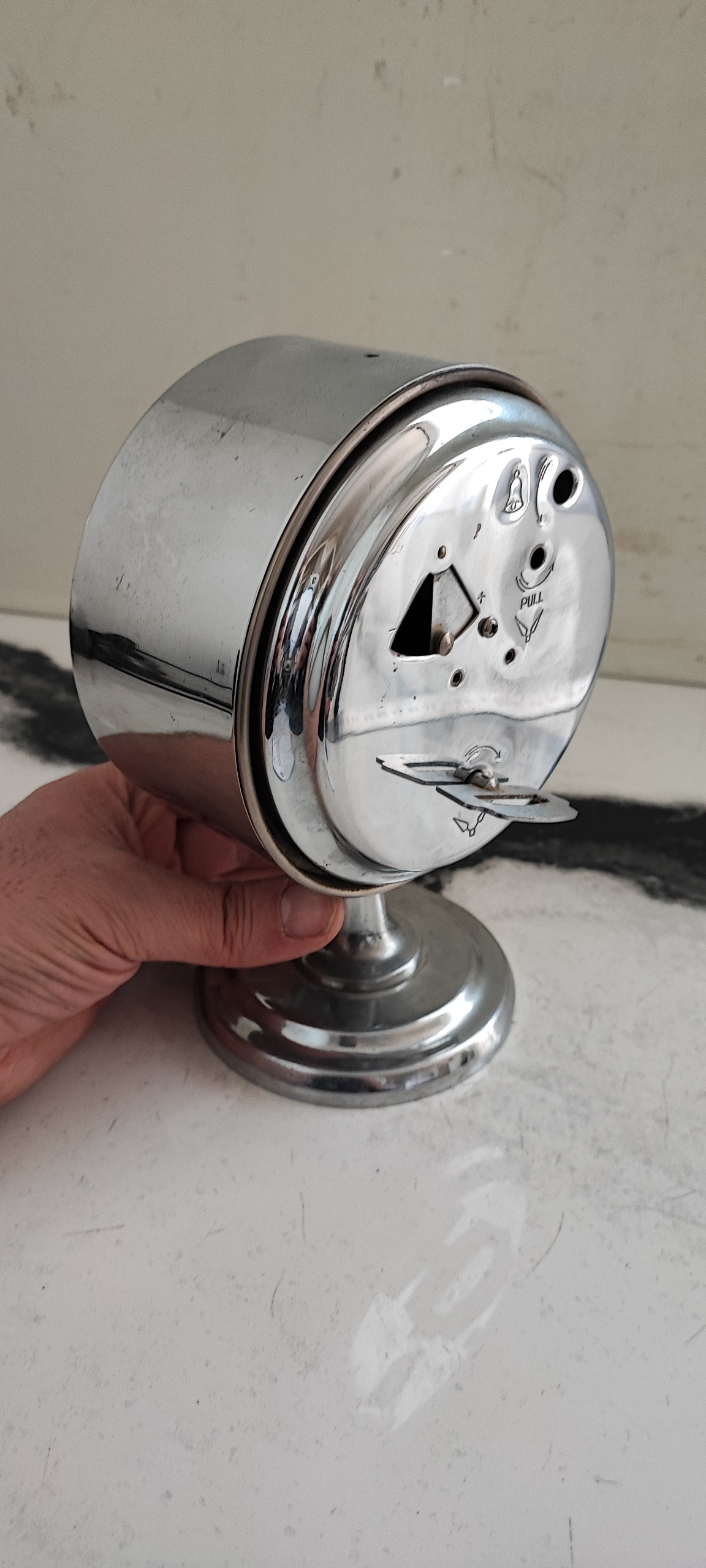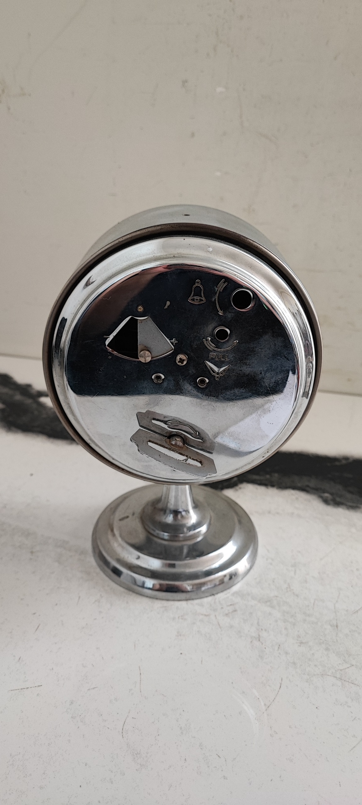 21 سانت ارتفاع، 14/5 سانت قطر، 1400 گرم وزن، تمام فلز و نایاب و زیبا و کلکسیونی، کار نمیکنه، یک کلید تنظیم ساعت ناقص