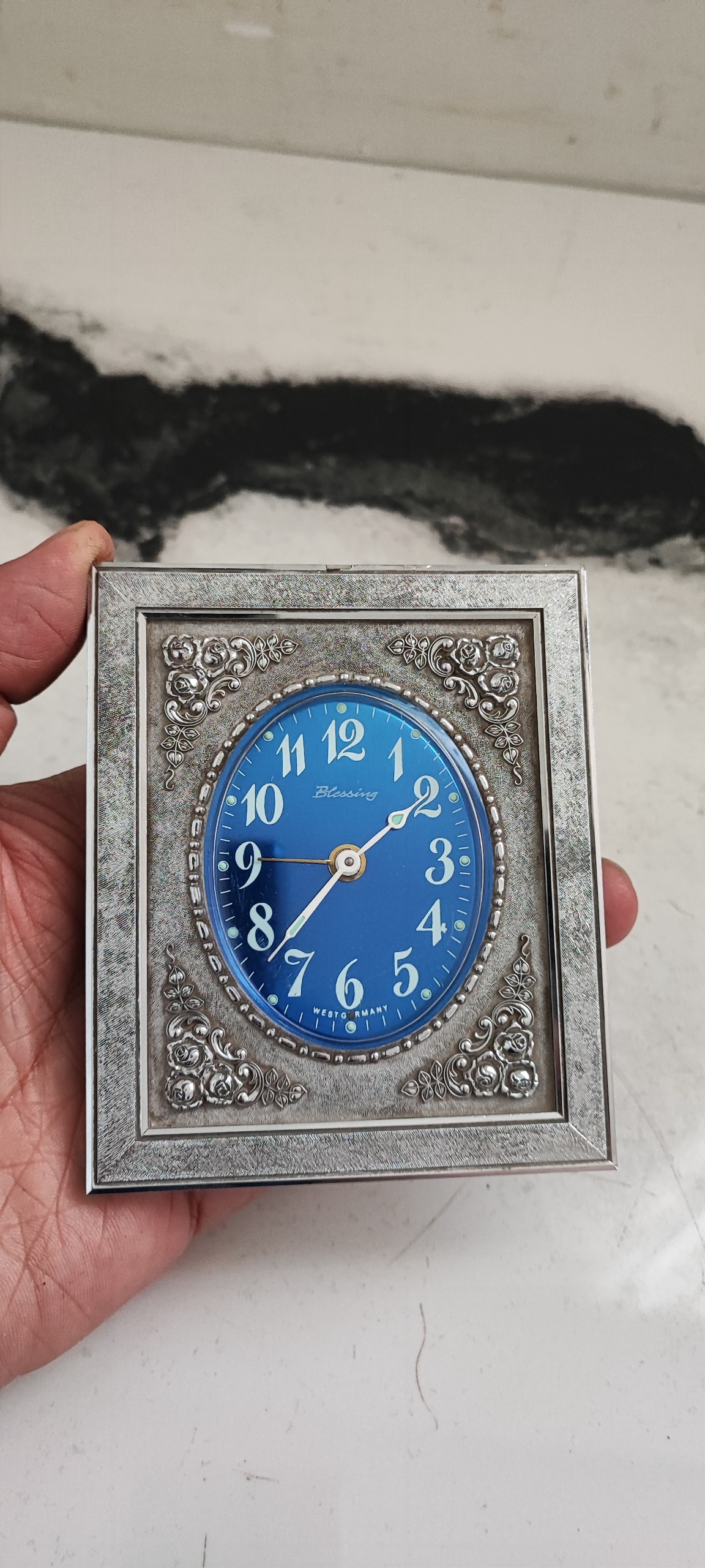 10/5×8/7 سانت ابعاد ساعت، تکان میدی کار میکنه ولی زود میخوابه، و باید تعمیر یا سرویس بشه، پایه هم نداره، زیبا و کلکسیونی