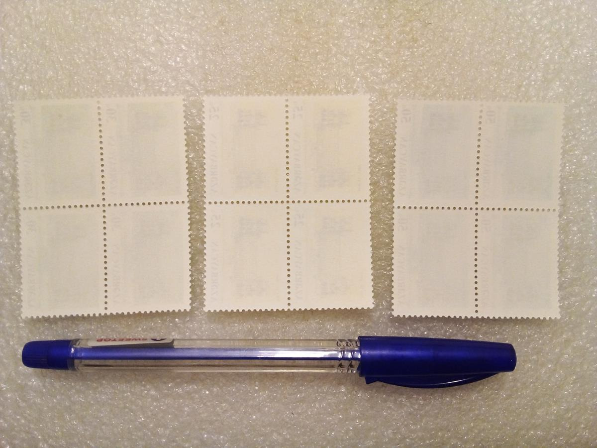 تمبرهای تک و بلوک خارجی با مهر گمرکی ارسالی جای مهر گمرگی ان متغیر با عکس و ممکنه در قسمت وسط یا بالا و پایین و یا چپ و راست باشد و اکثرا بی چسب میباشند .