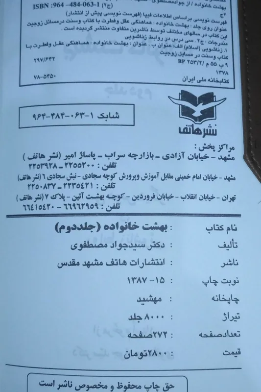 کتاب تمیز بدون خط خوردگی حاوی مطالب ارزنده در زمینه روابط بین زن و مرد در 270 صفحه.